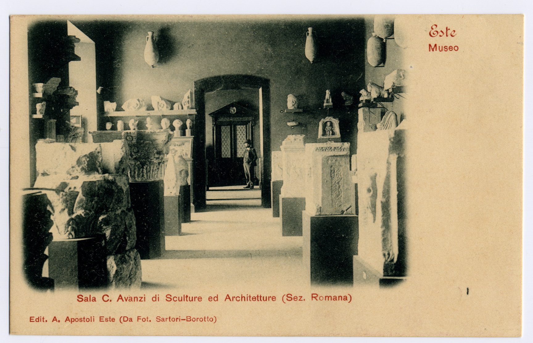 1834: La prima raccolta pubblica a Este fu istituita da Vincenzo Fracanzani: si trattava del Museo Civico Lapidario, con sede nell’oratorio di Santa Maria dei Battuti, all’interno del grande convento di San Francesco. Il primo nucleo del museo era formato dalla collezione di monumenti iscritti ed epigrafi dello studioso locale Isidoro Alessi, a cui si aggiunse la collezione Contarini, donata dal nuovo proprietario di Vigna Contarena in via dei Cappuccini. La custodia del museo fu affidata ad Eugenio Gasparini e il catalogo degli 89 pezzi fu redatto da Giuseppe Furlanetto.